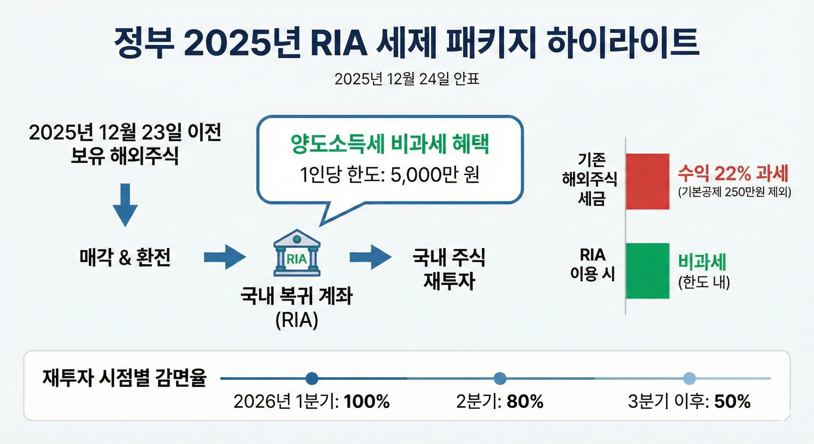 우선 핵심부터 말씀드리면, 정부가 2025년 12월 24일 발표한 세제 패키지의 하이라이트가 바로 이 RIA입니다. 내용은 아주 심플하면서도 강력해요.