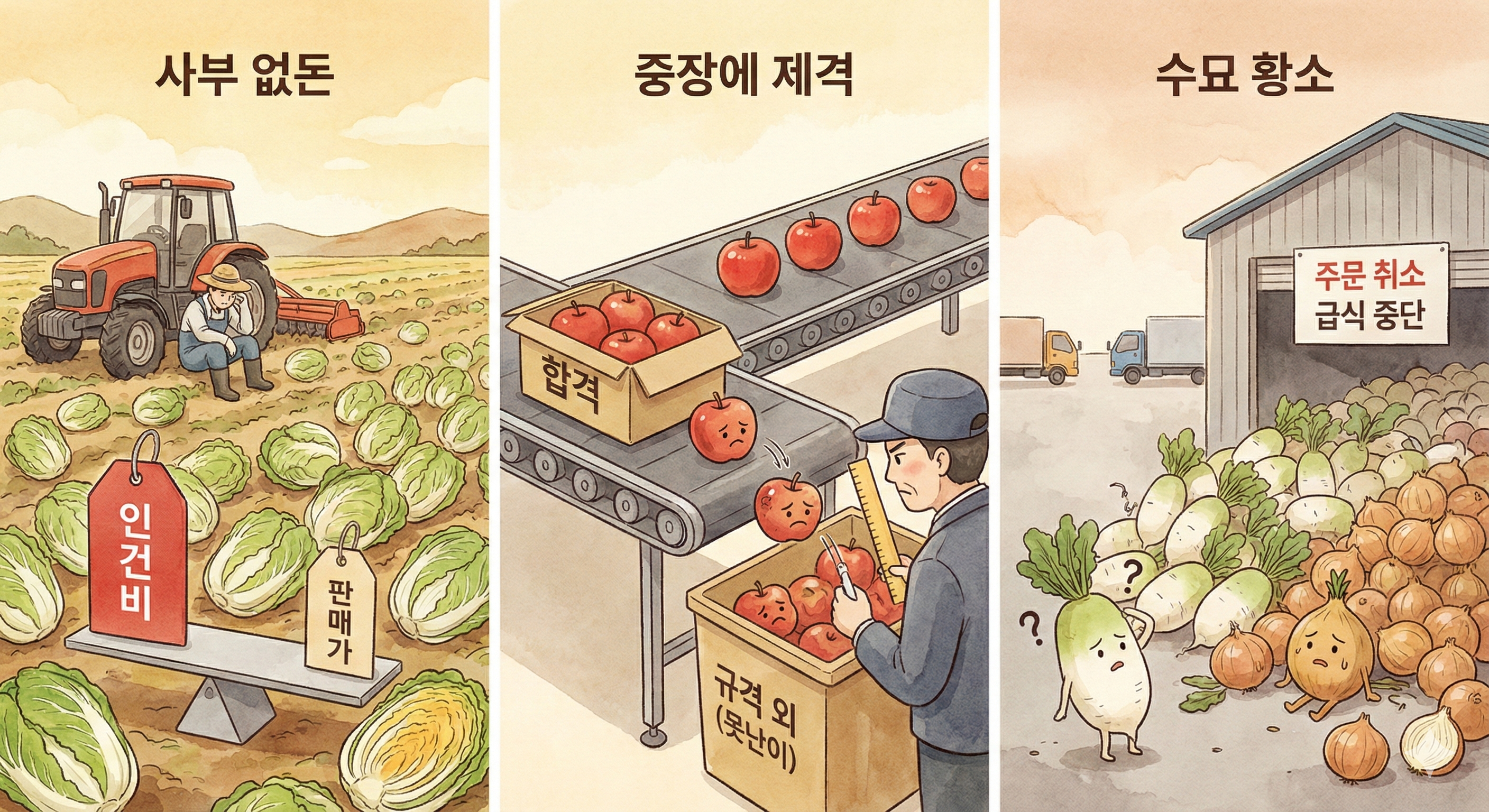 공산품이라면 창고에 쌓아두면 되지만, 채소나 과일은 금방 시들잖아요? 수요 예측이 빗나가거나 판로가 갑자기 막히면, 저장성이 약한 농산물은 속절없이 폐기로 이어지게 됩니다.