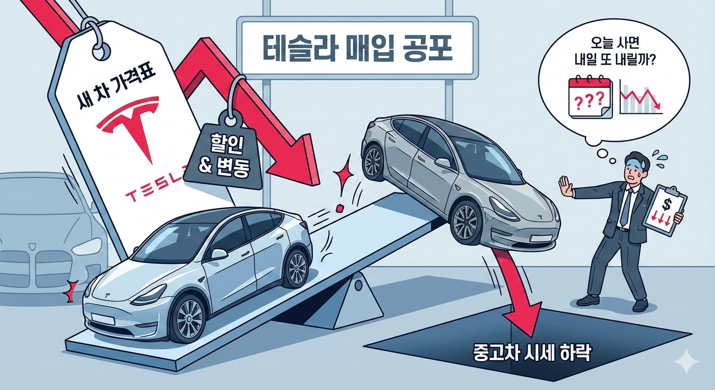 혹시 아침에 뉴스 보다가, 혹은 중고차 어플 켰다가 깜짝 놀라신 적 있으세요? "아니, 내가 차를 얼마나 아껴 탔는데 가격이 이렇게 떨어져?" 하고요. 결론부터 말씀드리면, 그건 차주님 잘못이 아니에요. 차에 문제가 있어서가 아니라, 테슬라라는 브랜드의 특성과 시장의 구조 때문에 벌어지는 자연스러운 현상이거든요.